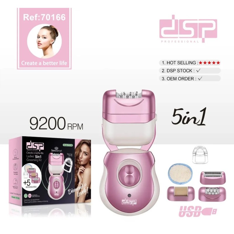 Prenez soin de votre beauté au quotidien avec l’épilateur DSP 5 en 1, un appareil multifonction conçu pour une épilation efficace et un soin complet du corps. Grâce à sa vitesse élevée de 9200 RPM, il élimine les poils rapidement tout en assurant un confort optimal.