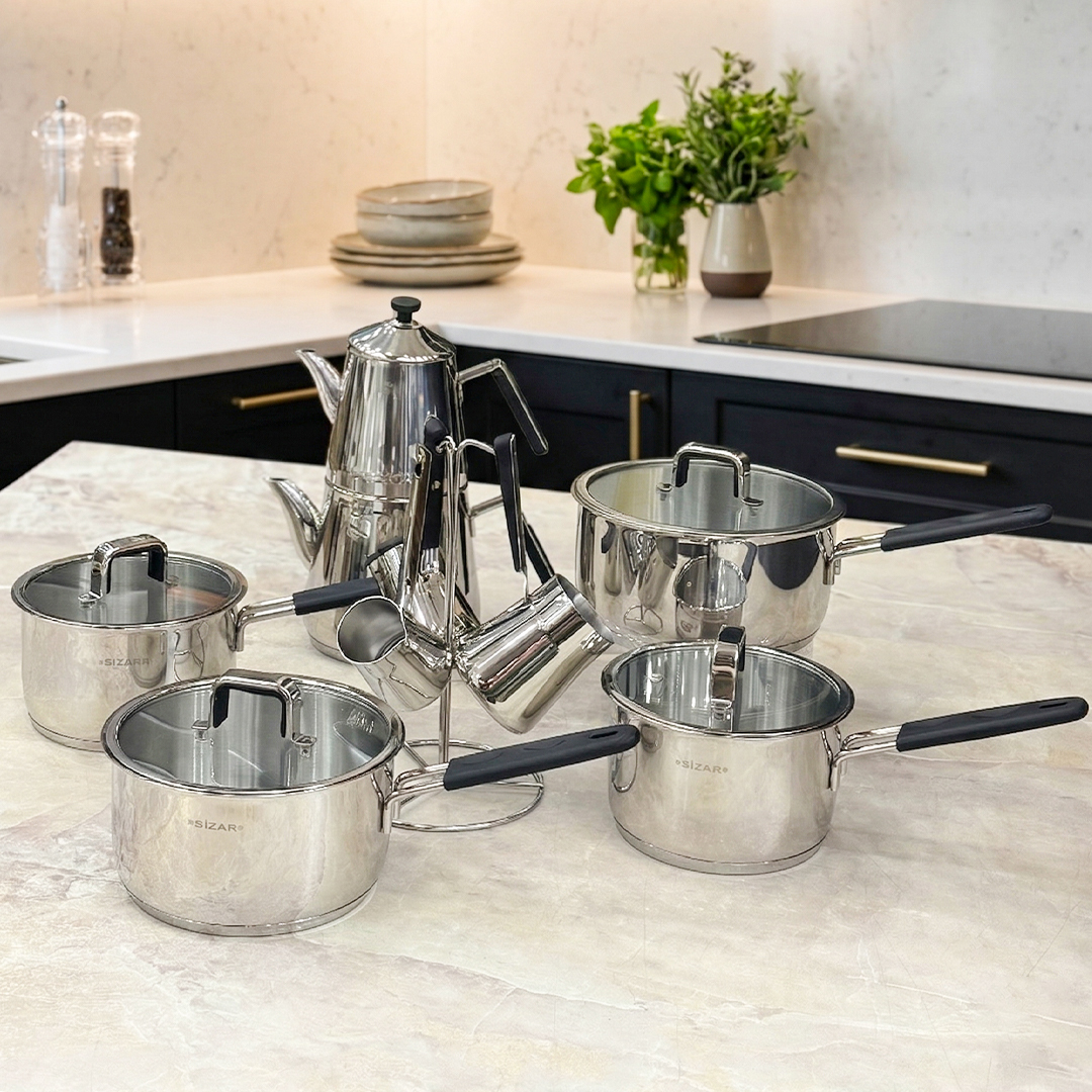 Offrez à votre cuisine une solution complète et élégante avec ce set en inox comprenant une batterie de cuisine et un service thé/café assorti. Idéal pour une utilisation quotidienne, ce pack vous permet de cuisiner et de servir avec style.
