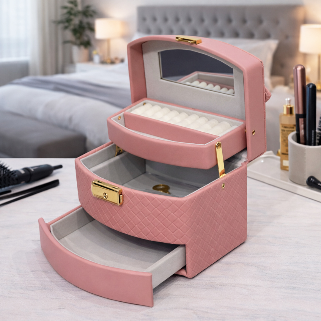 Le miroir intégré facilite le choix de vos bijoux au quotidien, tandis que les tiroirs et compartiments permettent de séparer bagues, colliers, boucles d’oreilles et bracelets pour un accès rapide et organisé. Un rangement élégant, pratique et discret, idéal pour un usage quotidien.