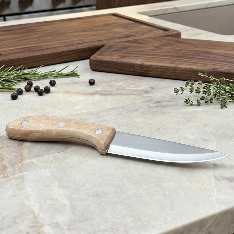 Ce couteau de cuisine en acier inoxydable est l’allié parfait pour toutes vos préparations. Sa lame tranchante assure une coupe précise et rapide, tandis que son manche en bois ergonomique offre une prise en main confortable et sécurisée. Idéal pour découper viandes, légumes ou fruits avec facilité au quotidien.