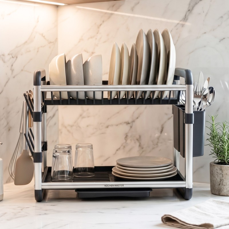 Optez pour un égouttoir pratique et compact qui s’adapte parfaitement à votre cuisine . Grâce à son design intelligent à 2 niveaux, il permet de sécher et organiser votre vaisselle facilement tout en économisant de l’espace sur votre plan de travail.