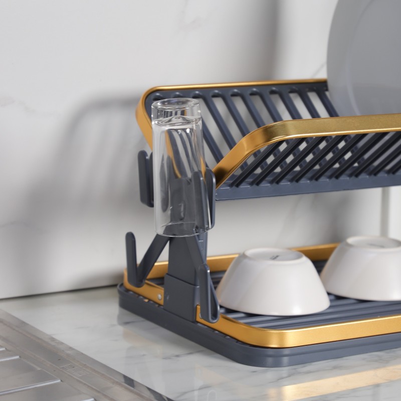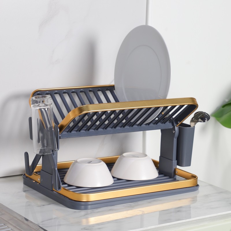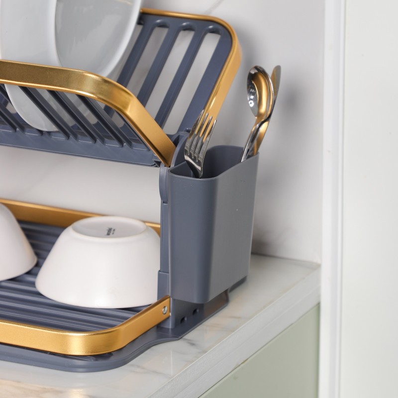 Doté de deux niveaux de rangement, il offre une capacité optimale pour accueillir assiettes, verres, bols et couverts, tout en maintenant un plan de travail propre et organisé. Conçu en aluminium léger et inoxydable, il garantit une résistance durable à la rouille et une utilisation quotidienne sans contrainte. Alliant esthétique et praticité, cet égouttoir est la solution idéale pour une cuisine bien ordonnée et élégante.