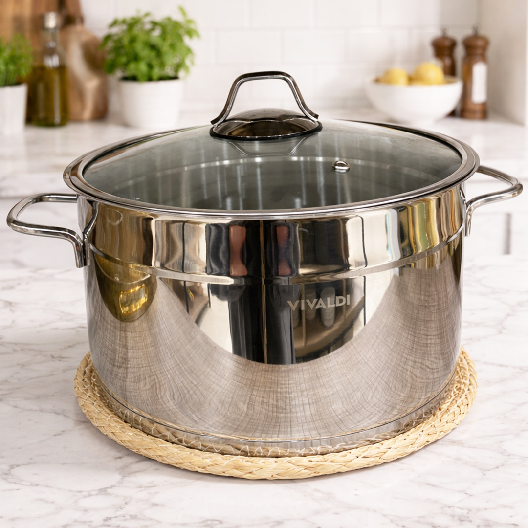 Optez pour la qualité et l’élégance avec ce faitout Vivaldi en acier inoxydable 18/10 de 26 cm. Conçu pour une cuisson performante et homogène, il est idéal pour préparer vos plats du quotidien comme les sauces, soupes, pâtes ou tajines modernes.