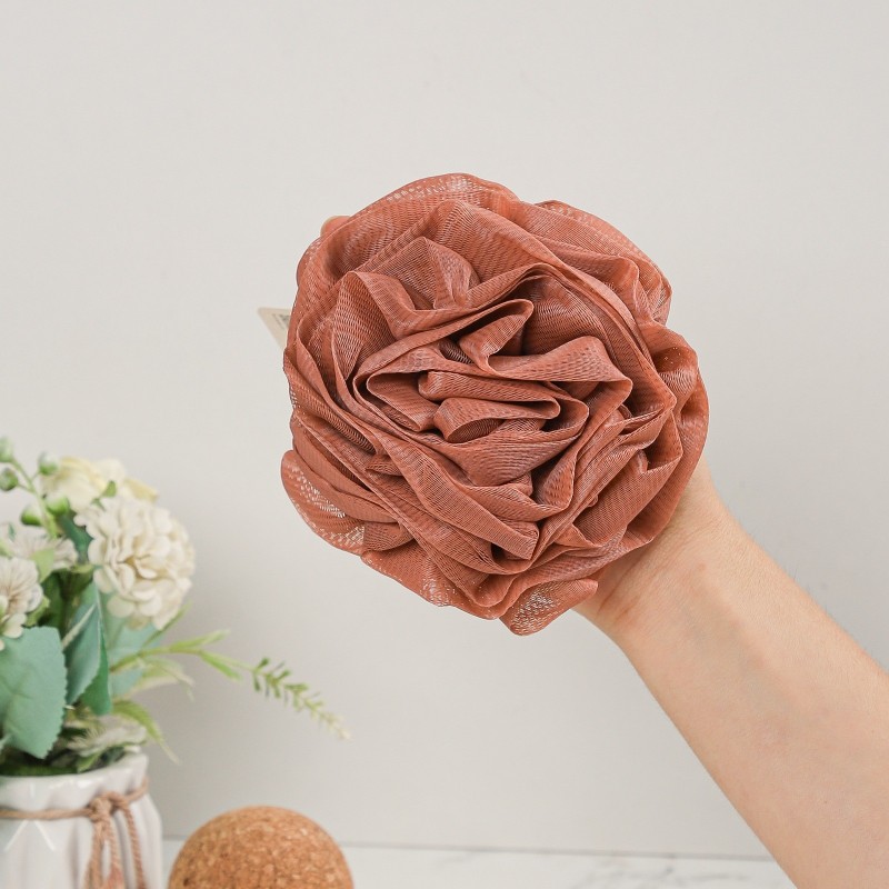 Offrez-vous un moment de douceur sous la douche avec cette fleur de bain en maille rose, légère et agréable sur la peau.