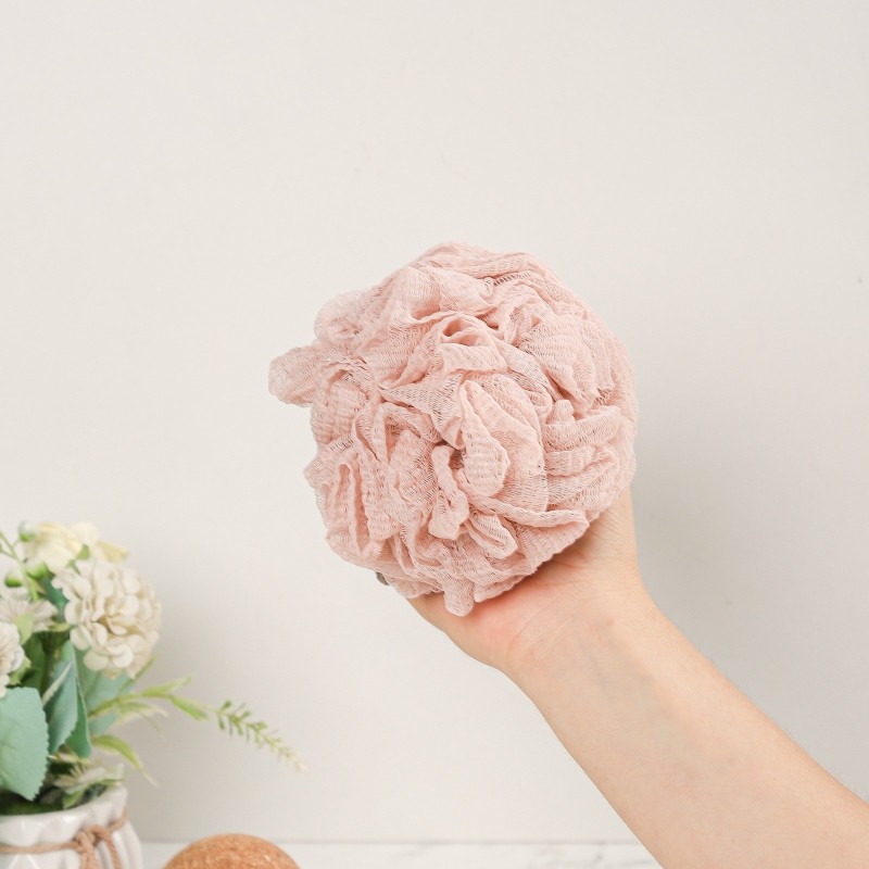 Offrez-vous un moment de douceur sous la douche avec cette fleur de bain en maille rose, légère et agréable sur la peau.