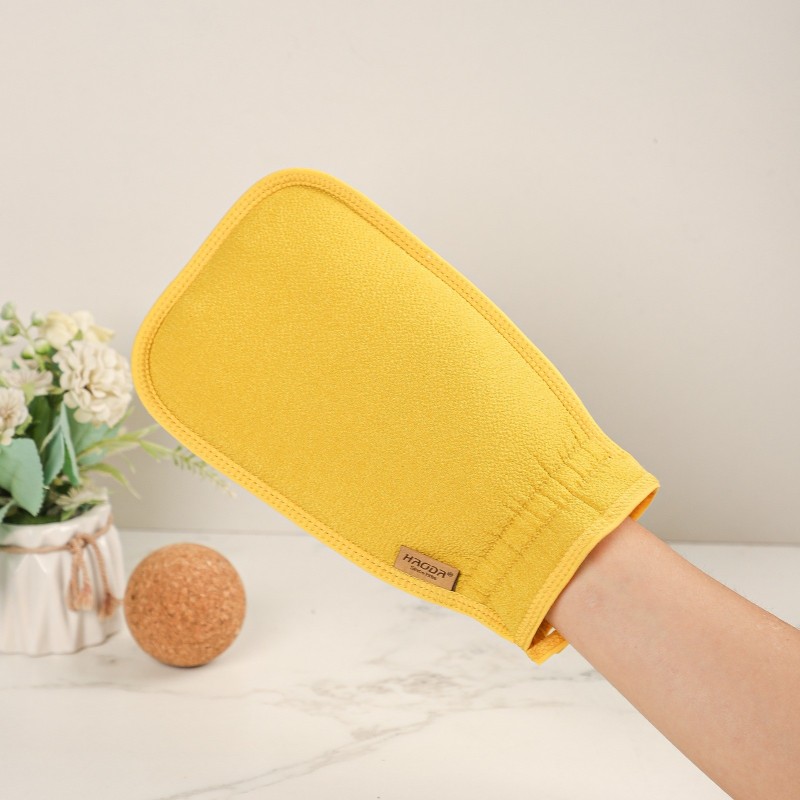Obtenez une peau plus douce et plus lisse avec ce gant de gommage exfoliant à texture grainée, conçu pour éliminer les cellules mortes et nettoyer en profondeur.