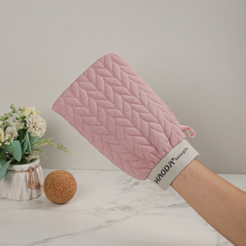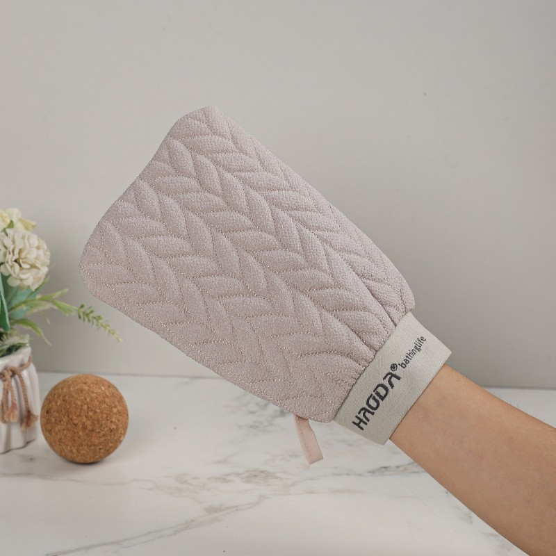 Obtenez une peau plus douce et plus lisse avec ce gant de gommage exfoliant à texture grainée, conçu pour éliminer les cellules mortes et nettoyer en profondeur.