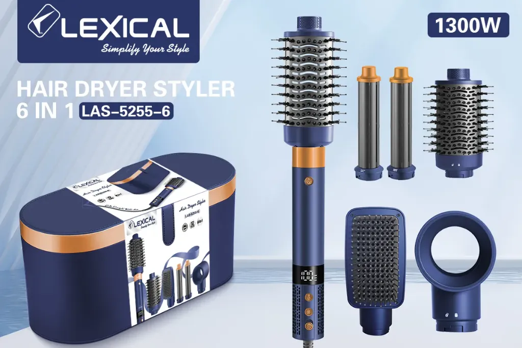 Transformez votre routine beauté avec le coffret coiffure 6 en 1 Lexical. Un appareil complet conçu pour sécher, lisser, boucler et donner du volume facilement, comme chez le coiffeur.