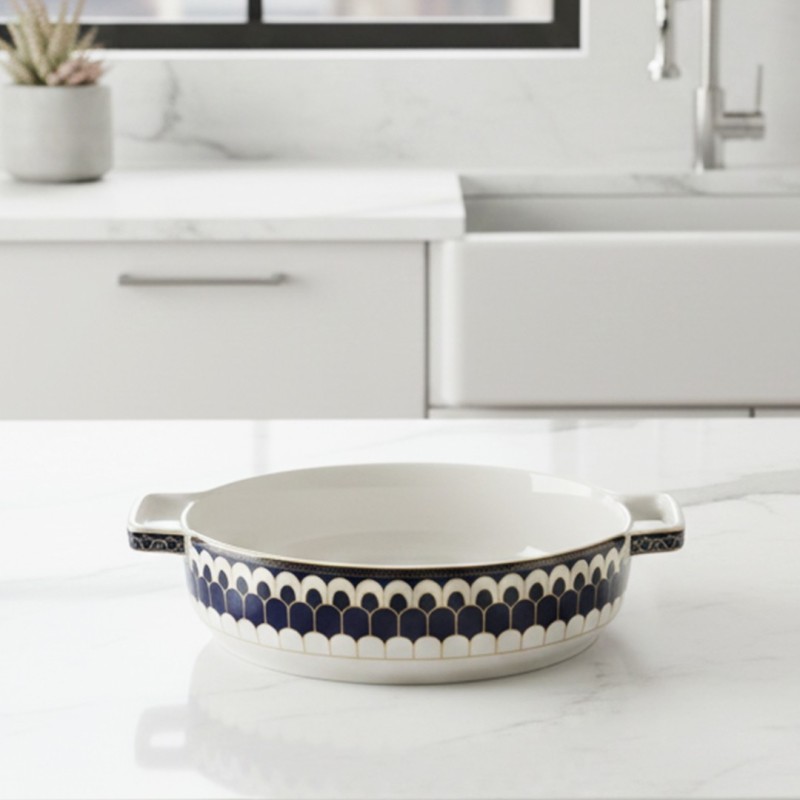 Ce plat à four en céramique allie élégance et performance pour sublimer vos repas du quotidien comme vos présentations de table. Son design bleu et doré apporte une touche raffinée et moderne, idéale pour servir directement du four à la table. Résistant à la chaleur et conçu pour une cuisson homogène, il est parfait pour gratins, lasagnes, rôtis, desserts et plats familiaux.