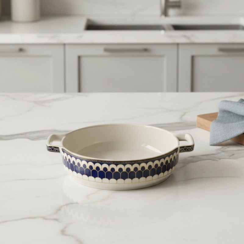 Ce plat à four en céramique allie élégance et performance pour sublimer vos repas du quotidien comme vos présentations de table. Son design bleu et doré apporte une touche raffinée et moderne, idéale pour servir directement du four à la table. Résistant à la chaleur et conçu pour une cuisson homogène, il est parfait pour gratins, lasagnes, rôtis, desserts et plats familiaux.