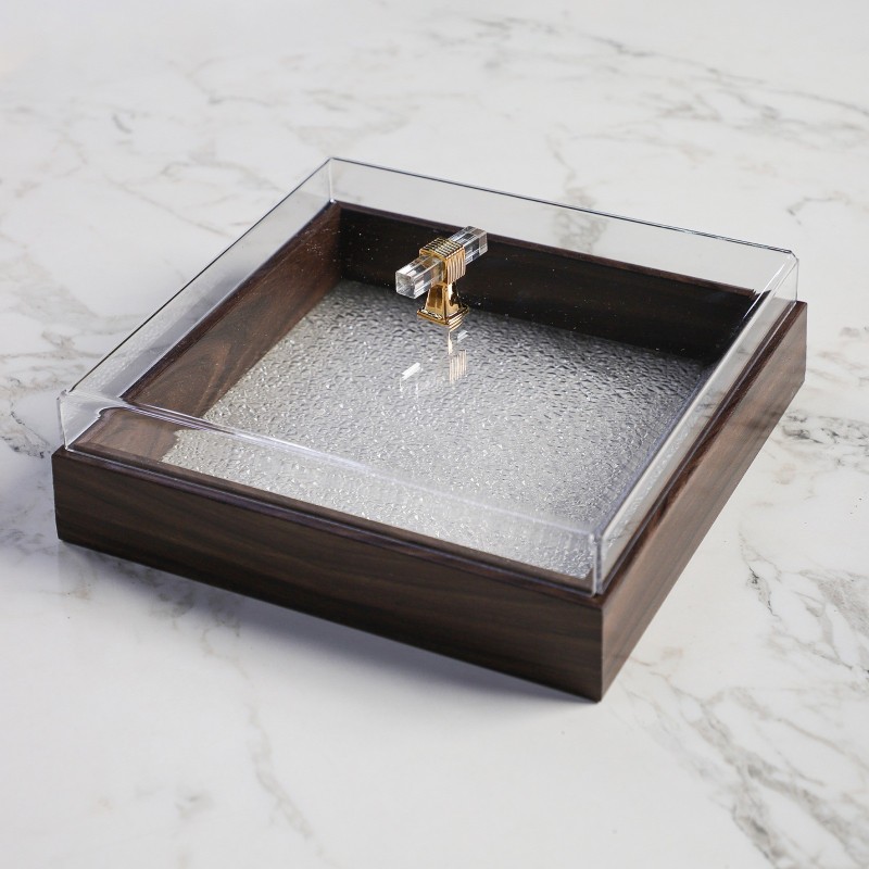 Alliez élégance et praticité avec ce plateau de présentation raffiné. Son design en imitation bois associé à un couvercle transparent avec poignée dorée permet de mettre en valeur vos préparations tout en les protégeant de la poussière et de l’humidité. Idéal pour servir gâteaux, fruits secs, biscuits, fromages ou autres gourmandises lors de vos réceptions ou au quotidien.