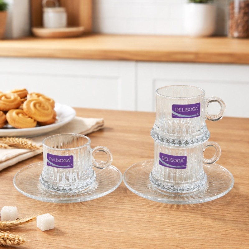 Apportez une touche raffinée à vos moments café avec ce service à café en verre DELISOGA, composé de tasses élégantes et leurs soucoupes assorties. Son verre travaillé avec relief décoratif et sa finition dorée délicate offrent une présentation chic et moderne. Parfait pour servir espresso, café turc ou café serré, ce service met en valeur votre table tout en restant pratique pour un usage quotidien. Sa transparence élégante permet de sublimer la couleur de votre café et d’impressionner vos invités.