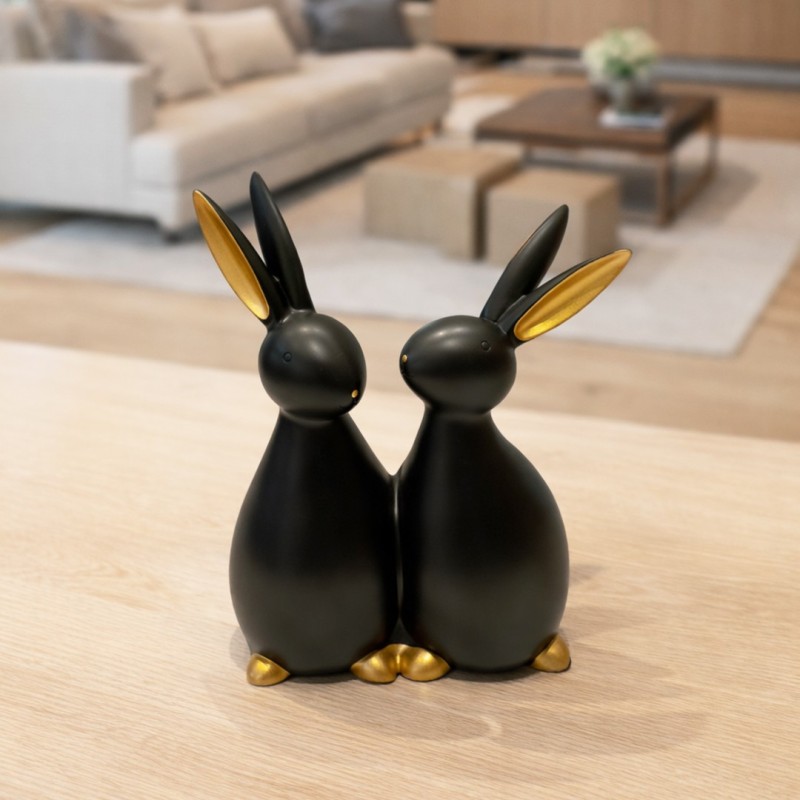 Ajoutez une touche de douceur et d’élégance à votre intérieur avec cette statue décorative représentant un couple de lapins modernes en blanc et or. Leur design minimaliste et leurs lignes arrondies apportent une ambiance chaleureuse et raffinée, parfaite pour sublimer un salon, une chambre ou une étagère décorative. Les détails dorés sur les oreilles et les pattes créent un contraste chic avec le blanc mat, donnant à cette pièce un style à la fois moderne et intemporel. Fabriquée en résine de qualité, cette statue est durable, stable et soigneusement finie.
