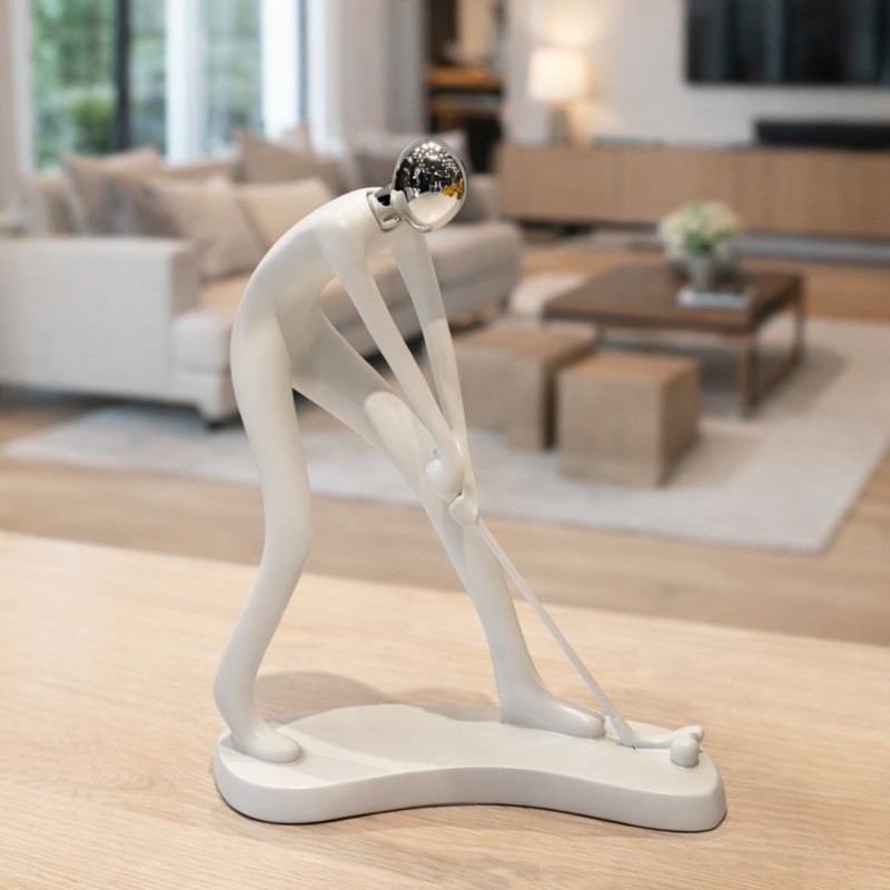 Ajoutez une touche artistique et contemporaine à votre intérieur avec cette statue décorative représentant un homme abstrait en mouvement. Son design fluide et minimaliste symbolise l’effort, la concentration et la détermination, ce qui en fait une pièce décorative forte et expressive. La combinaison du blanc mat avec la tête argentée effet miroir apporte un contraste moderne et élégant, parfait pour sublimer un salon, un bureau ou un espace de travail. Conçue en résine de qualité, cette statue offre une excellente stabilité et une finition soignée pour un rendu haut de gamme.